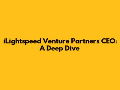 Hey everyone! Today, we're diving deep into the world of venture capital, specifically focusing on iLightspeed Venture Partners and its CEO. Venture capital can be a bit of a mystery, right? But don't worry, we'll break it down in a way that's easy to understand. We'll explore what makes iLightspeed tick, the role of its CEO, and what it all means for the future of innovation. So, grab a coffee, and let's get started!