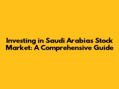 Investing In Saudi Arabia's Stock Market: A Comprehensive Guide