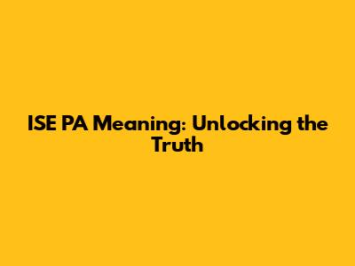 ISE PA Meaning: Unlocking The Truth