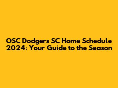 OSC Dodgers SC Home Schedule 2024: Your Guide To The Season