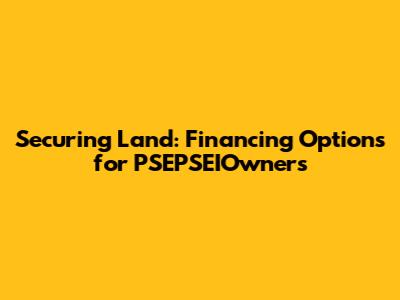 Securing Land: Financing Options For PSEPSEIOwners