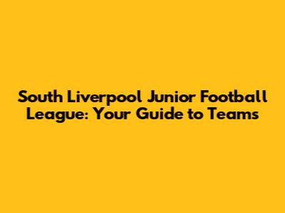 South Liverpool Junior Football League: Your Guide To Teams
