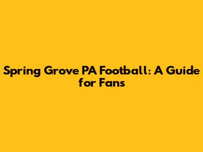 Spring Grove PA Football: A Guide For Fans