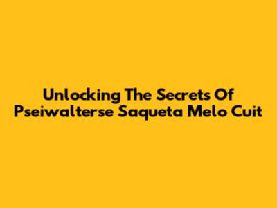 Unlocking The Secrets Of Pseiwalterse Saqueta Melo Cuit